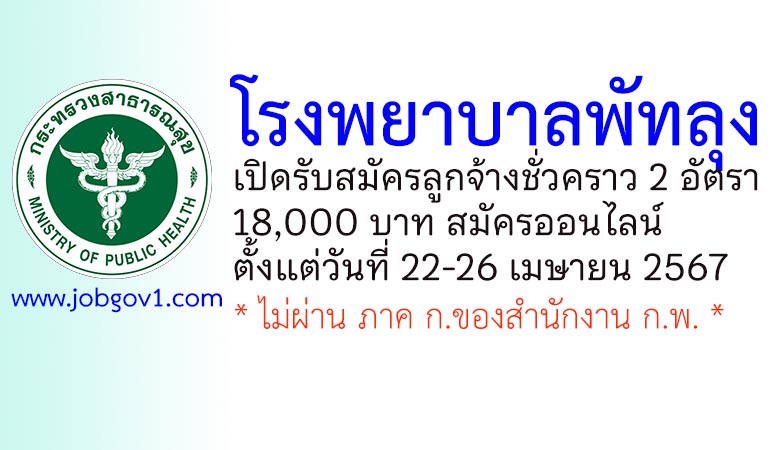 โรงพยาบาลพัทลุง รับสมัครลูกจ้างชั่วคราว 2 อัตรา ตั้งแต่วันที่ 22-26 เมษายน 2567