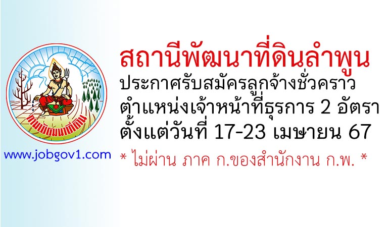สถานีพัฒนาที่ดินลำพูน รับสมัครลูกจ้างชั่วคราว ตำแหน่งเจ้าหน้าที่ธุรการ 2 อัตรา ตั้งแต่วันที่ 17-23 เมษายน 2567