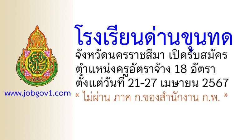 โรงเรียนด่านขุนทด รับสมัครครูอัตราจ้าง 18 อัตรา ตั้งแต่วันที่ 21-27 เมษายน 2567