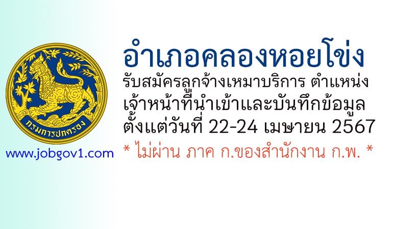 อำเภอคลองหอยโข่ง รับสมัครลูกจ้างเหมาบริการ ตำแหน่งเจ้าหน้าที่นำเข้าและบันทึกข้อมูล ตั้งแต่วันที่ 22-24 เมษายน 2567