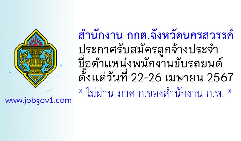 ลูกจ้างประจำ ตำแหน่งพนักงานขับรถยนต์ สำนักงานคณะกรรมการการเลือกตั้งประจำจังหวัดนครสวรรค์ จำนวน 1 อัตรา