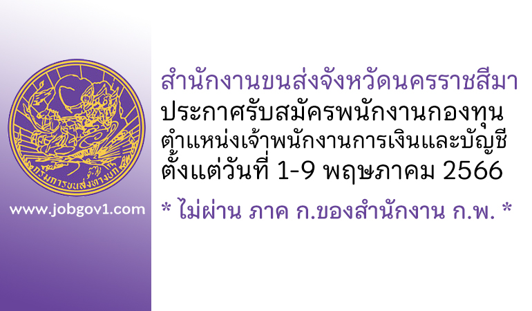 สำนักงานขนส่งจังหวัดนครราชสีมา รับสมัครพนักงานกองทุน ตำแหน่งเจ้าพนักงานการเงินและบัญชี ตั้งแต่วันที่ 1-9 พฤษภาคม 2566