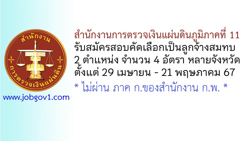 สำนักงานการตรวจเงินแผ่นดินภูมิภาคที่ 11 รับสมัครสอบคัดเลือกเป็นลูกจ้างสมทบ 4 อัตรา ตั้งแต่ 29 เมษายน – 21 พฤษภาคม 2567