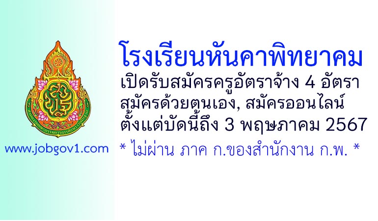 โรงเรียนหันคาพิทยาคม รับสมัครครูอัตราจ้าง 4 อัตรา ตั้งแต่บัดนี้ถึง 3 พฤษภาคม 2567