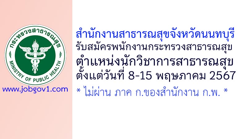 สำนักงานสาธารณสุขจังหวัดนนทบุรี รับสมัครพนักงานกระทรวงสาธารณสุขทั่วไป ตำแหน่งนักวิชาการสาธารณสุข ตั้งแต่วันที่ 8-15 พฤษภาคม 2567