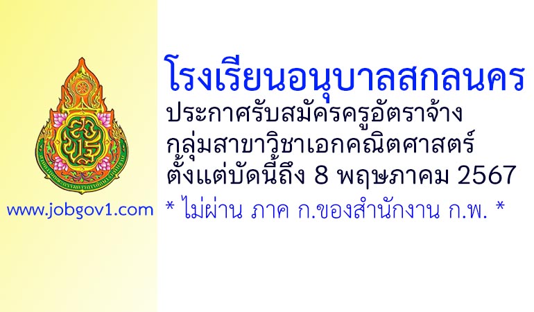 โรงเรียนอนุบาลสกลนคร รับสมัครครูอัตราจ้าง กลุ่มสาขาวิชาเอกคณิตศาสตร์ ตั้งแต่บัดนี้ถึง 8 พฤษภาคม 2567