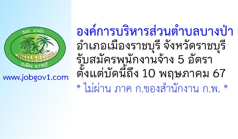 องค์การบริหารส่วนตำบลบางป่า รับสมัครบุคคลเพื่อสรรหาเป็นพนักงานจ้าง 5 อัตรา ตั้งแต่วันที่ 25-30 เมษายน 2567