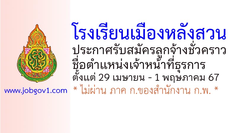 โรงเรียนเมืองหลังสวน รับสมัครลูกจ้างชั่วคราว ตำแหน่งเจ้าหน้าที่ธุรการ ตั้งแต่ 29 เมษายน – 1 พฤษภาคม 2567