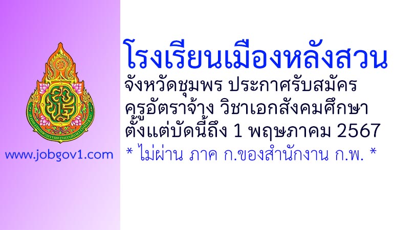 โรงเรียนเมืองหลังสวน รับสมัครครูอัตราจ้าง วิชาเอกสังคมศึกษา ตั้งแต่บัดนี้ถึง 1 พฤษภาคม 2567