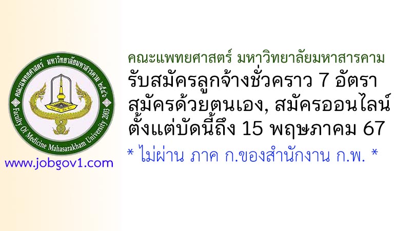 คณะแพทยศาสตร์ มหาวิทยาลัยมหาสารคาม รับสมัครลูกจ้างชั่วคราว 7 อัตรา ตั้งแต่บัดนี้ถึง 15 พฤษภาคม 2567