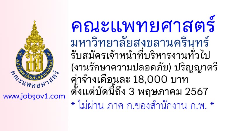 คณะแพทยศาสตร์ มหาวิทยาลัยสงขลานครินทร์ รับสมัครเจ้าหน้าที่บริหารงานทั่วไป (งานรักษาความปลอดภัย) ตั้งแต่บัดนี้ถึง 3 พฤษภาคม 2567