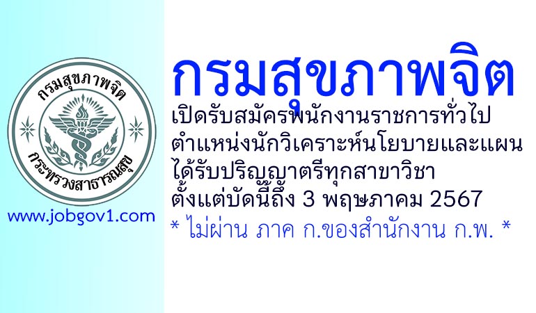 กรมสุขภาพจิต รับสมัครพนักงานราชการทั่วไป ตำแหน่งนักวิเคราะห์นโยบายและแผน ตั้งแต่บัดนี้ถึง 3 พฤษภาคม 2567