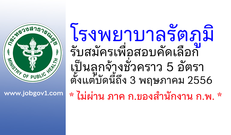 โรงพยาบาลรัตภูมิ รับสมัครเพื่อสอบคัดเลือกเป็นลูกจ้างชั่วคราว 5 อัตรา ตั้งแต่บัดนี้ถึง 3 พฤษภาคม 2556