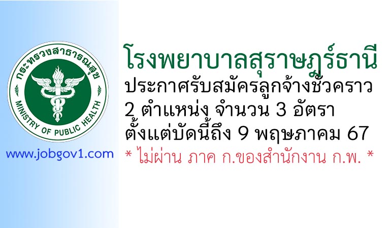 โรงพยาบาลสุราษฎร์ธานี รับสมัครลูกจ้างชั่วคราว 3 อัตรา ตั้งแต่บัดนี้ถึง 9 พฤษภาคม 2567