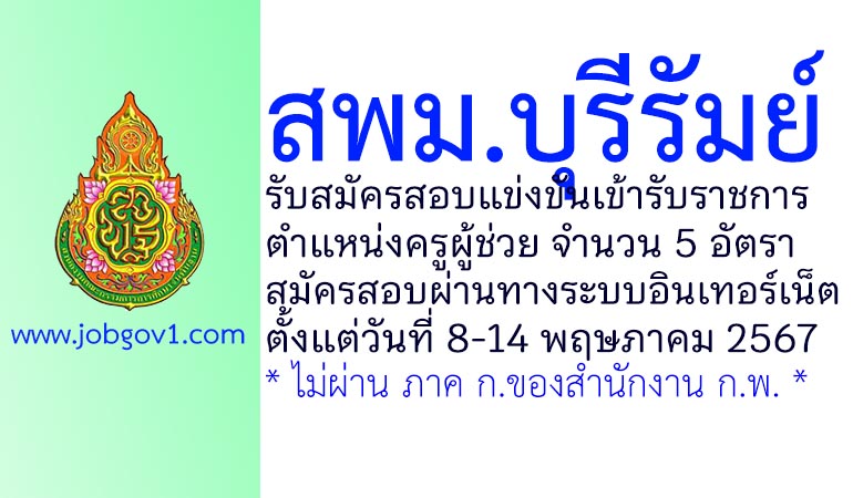 สพม.บุรีรัมย์ รับสมัครสอบแข่งขันเข้ารับราชการ ตำแหน่งครูผู้ช่วย 5 อัตรา ตั้งแต่วันที่ 8-14 พฤษภาคม 2567