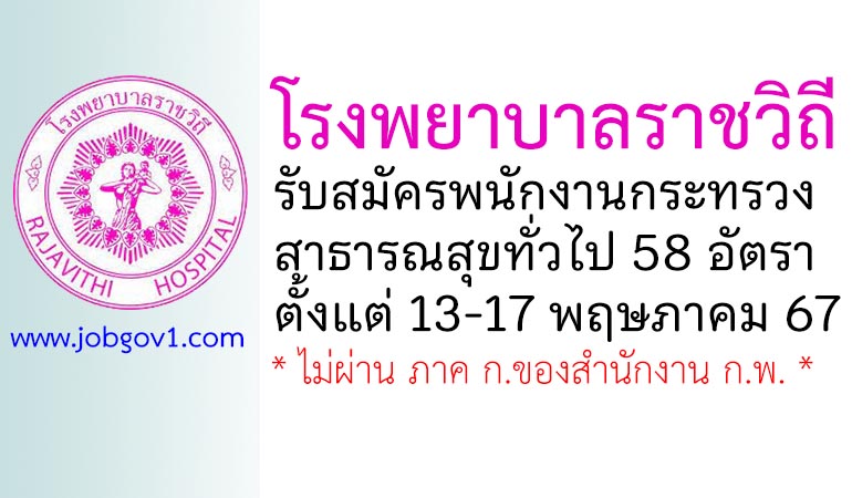 โรงพยาบาลราชวิถี รับสมัครพนักงานกระทรวงสาธารณสุขทั่วไป 58 อัตรา ตั้งแต่วันที่ 13-17 พฤษภาคม 2567