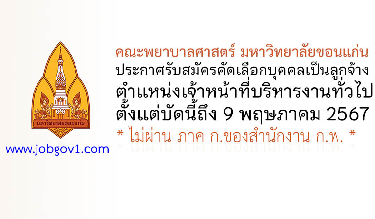 คณะพยาบาลศาสตร์ มหาวิทยาลัยขอนแก่น รับสมัครเจ้าหน้าที่บริหารงานทั่วไป ตั้งแต่บัดนี้ถึง 9 พฤษภาคม 2567
