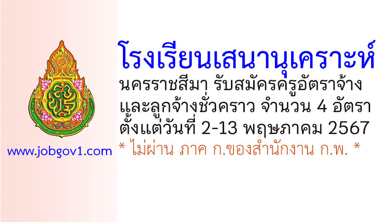 โรงเรียนเสนานุเคราะห์ รับสมัครครูอัตราจ้าง และลูกจ้างชั่วคราว 4 อัตรา ตั้งแต่วันที่ 2-13 พฤษภาคม 2567