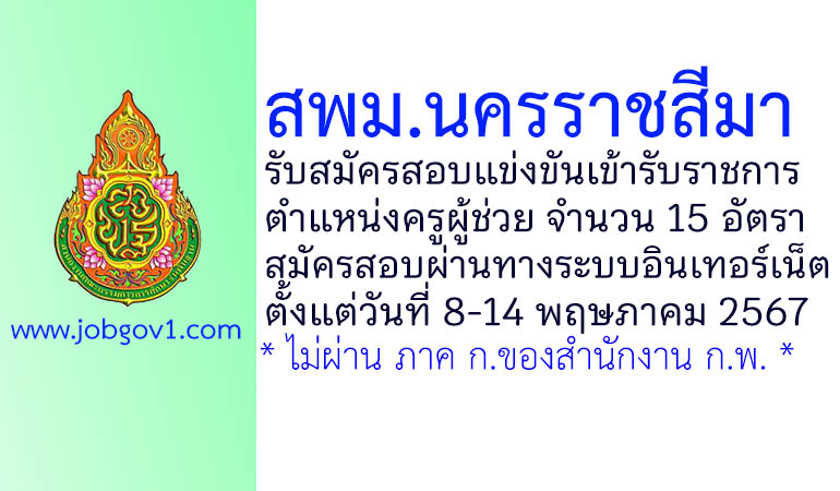 สพม.นครราชสีมา รับสมัครสอบแข่งขันเข้ารับราชการ ตำแหน่งครูผู้ช่วย 15 อัตรา ตั้งแต่วันที่ 8-14 พฤษภาคม 2567