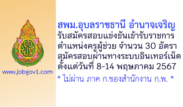 สพม.อุบลราชธานี อำนาจเจริญ รับสมัครสอบแข่งขันเข้ารับราชการ ตำแหน่งครูผู้ช่วย 30 อัตรา ตั้งแต่วันที่ 8-14 พฤษภาคม 2567