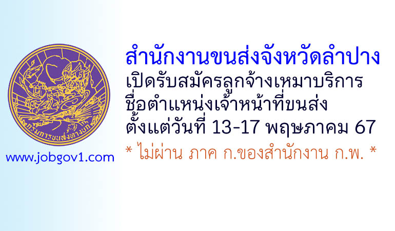 สำนักงานขนส่งจังหวัดลำปาง รับสมัครลูกจ้างเหมาบริการ ตำแหน่งเจ้าหน้าที่ขนส่ง ตั้งแต่วันที่ 13-17 พฤษภาคม 2567