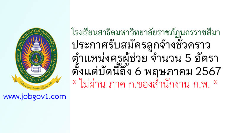 โรงเรียนสาธิตมหาวิทยาลัยราชภัฏนครราชสีมา รับสมัครลูกจ้างชั่วคราว ตำแหน่งครูผู้ช่วย จำนวน 5 อัตรา ตั้งแต่บัดนี้ถึง 6 พฤษภาคม 2567