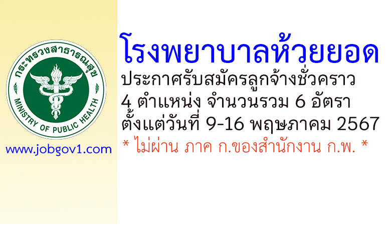 โรงพยาบาลห้วยยอด รับสมัครลูกจ้างชั่วคราว 6 อัตรา ตั้งแต่วันที่ 9-16 พฤษภาคม 2567