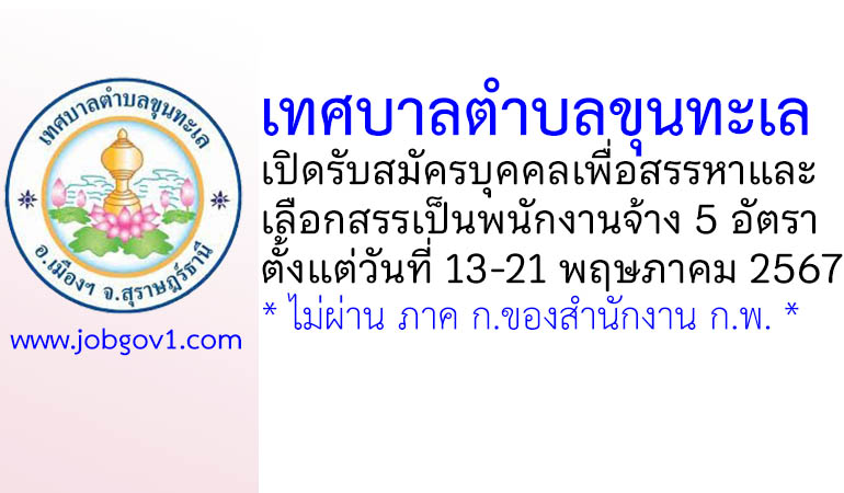 เทศบาลตำบลขุนทะเล รับสมัครบุคคลเพื่อสรรหาและเลือกสรรเป็นพนักงานจ้าง 5 อัตรา ตั้งแต่วันที่ 13-21 พฤษภาคม 2567