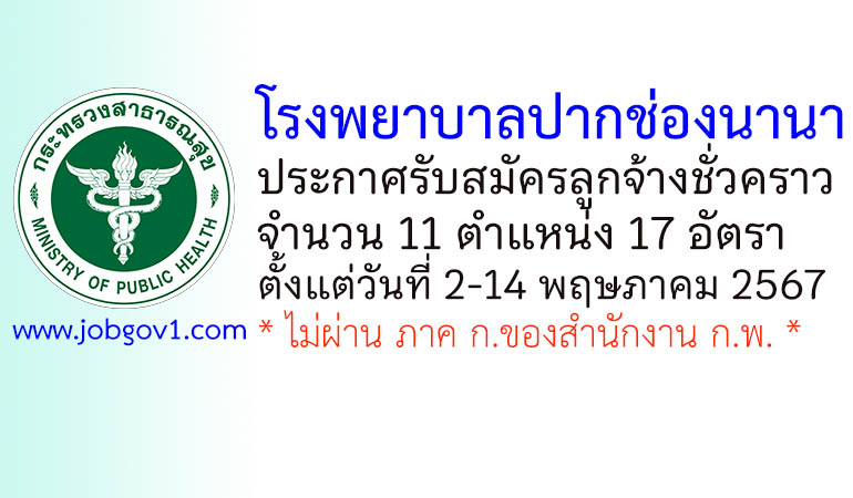 โรงพยาบาลปากช่องนานา รับสมัครลูกจ้างชั่วคราว 17 อัตรา ตั้งแต่วันที่ 2-14 พฤษภาคม 2567