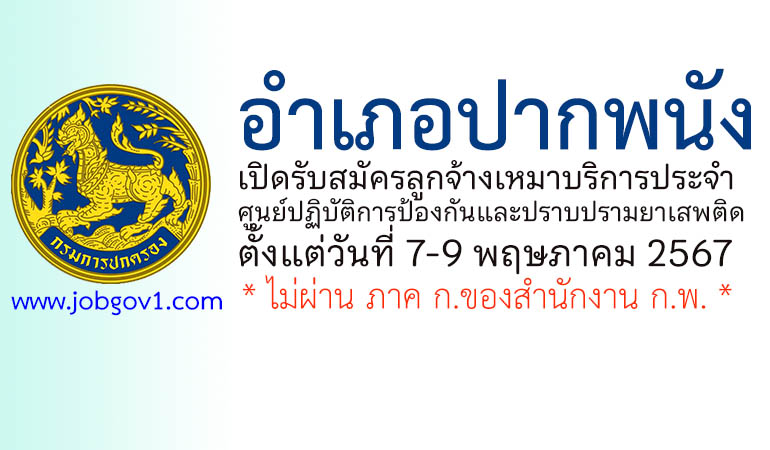 อำเภอปากพนัง รับสมัครลูกจ้างเหมาบริการประจำศูนย์ปฏิบัติการป้องกันและปราบปรามยาเสพติด ตั้งแต่วันที่ 7-9 พฤษภาคม 2567
