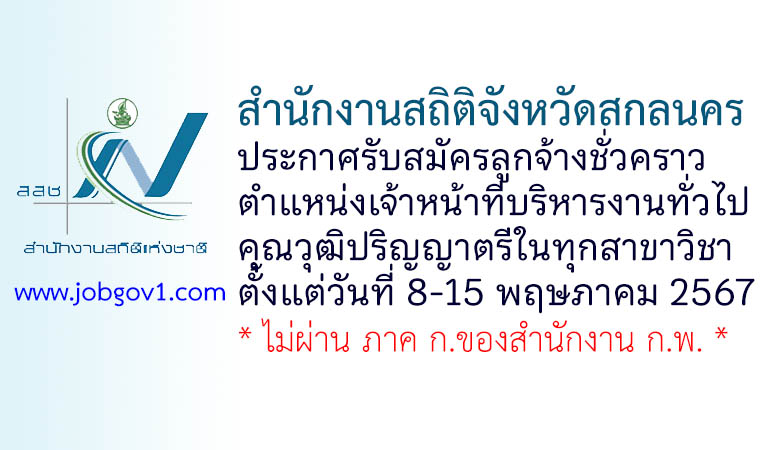 สำนักงานสถิติจังหวัดสกลนคร รับสมัครลูกจ้างชั่วคราว ตำแหน่งเจ้าหน้าที่บริหารงานทั่วไป ตั้งแต่วันที่ 8-15 พฤษภาคม 2567