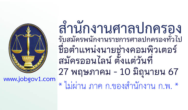 สำนักงานศาลปกครอง รับสมัครพนักงานราชการศาลปกครองทั่วไป ตำแหน่งนายช่างคอมพิวเตอร์ ตั้งแต่ 27 พฤษภาคม – 10 มิถุนายน 2567