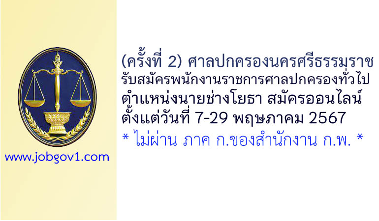 (ครั้งที่ 2) ศาลปกครองนครศรีธรรมราช รับสมัครพนักงานราชการศาลปกครองทั่วไป ตำแหน่งนายช่างโยธา ตั้งแต่วันที่ 7-29 พฤษภาคม 2567