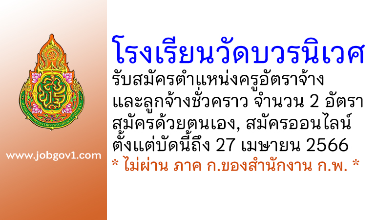 โรงเรียนวัดบวรนิเวศ รับสมัครครูอัตราจ้าง และลูกจ้างชั่วคราว 2 อัตรา ตั้งแต่บัดนี้ถึง 27 เมษายน 2566