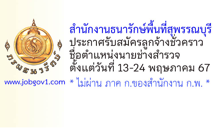 สำนักงานธนารักษ์พื้นที่สุพรรณบุรี รับสมัครลูกจ้างชั่วคราว ตำแหน่งนายช่างสำรวจ ตั้งแต่วันที่ 13-24 พฤษภาคม 2567
