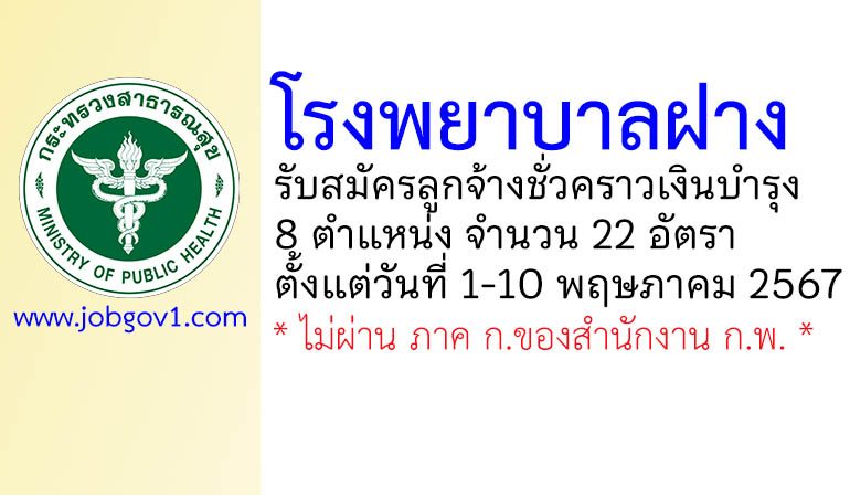 โรงพยาบาลฝาง รับสมัครลูกจ้างชั่วคราว 22 อัตรา ตั้งแต่วันที่ 1-10 พฤษภาคม 2567