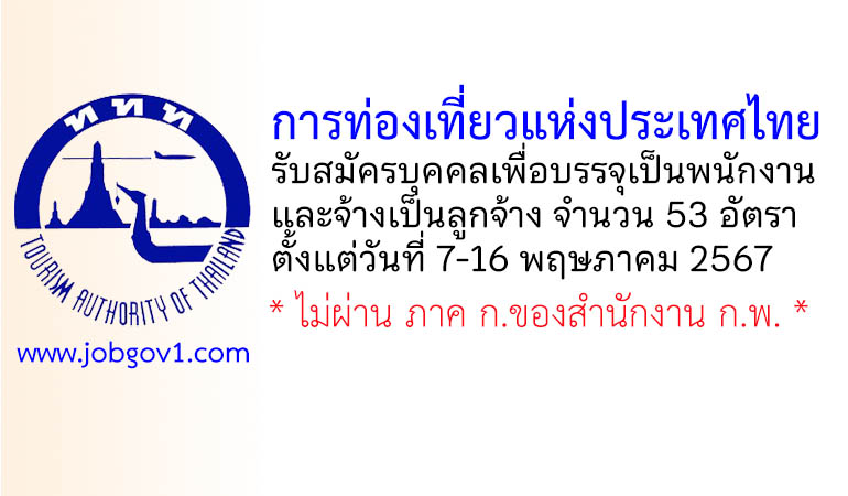 การท่องเที่ยวแห่งประเทศไทย รับสมัครบุคคลเพื่อบรรจุเป็นพนักงานหรือจ้างเป็นลูกจ้าง 53 อัตรา ตั้งแต่วันที่ 7-16 พฤษภาคม 2567