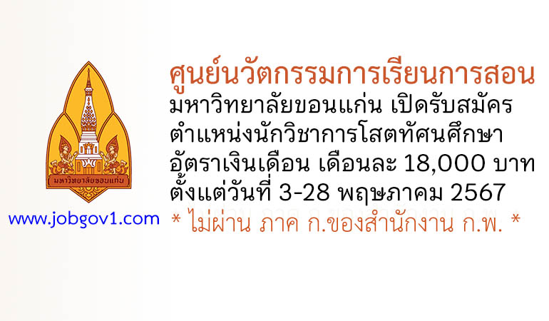 ศูนย์นวัตกรรมการเรียนการสอน มหาวิทยาลัยขอนแก่น รับสมัครตำแหน่งนักวิชาการโสตทัศนศึกษา ตั้งแต่วันที่ 3-28 พฤษภาคม 2567