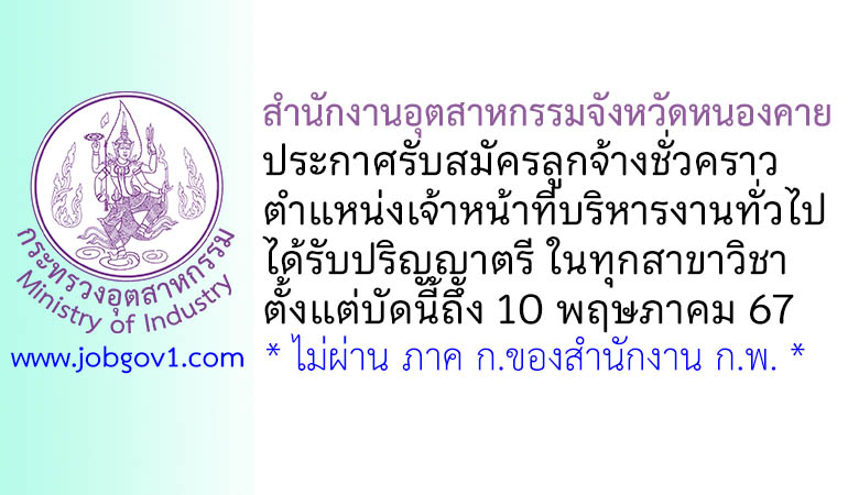 สำนักงานอุตสาหกรรมจังหวัดหนองคาย รับสมัครลูกจ้างชั่วคราว ตำแหน่งเจ้าหน้าที่บริหารงานทั่วไป ตั้งแต่บัดนี้ถึง 10 พฤษภาคม 2567