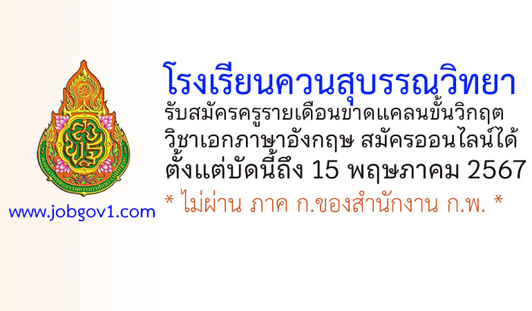 โรงเรียนควนสุบรรณวิทยา รับสมัครครูรายเดือนขาดแคลนขั้นวิกฤต วิชาเอกภาษาอังกฤษ ตั้งแต่วันที่ 9-15 พฤษภาคม 2567