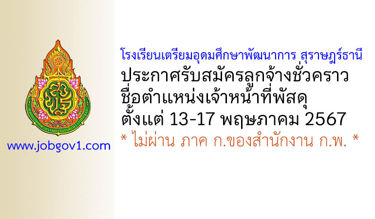 โรงเรียนเตรียมอุดมศึกษาพัฒนาการ สุราษฎร์ธานี รับสมัครลูกจ้างชั่วคราว ตำแหน่งเจ้าหน้าที่พัสดุ ตั้งแต่วันที่ 13-17 พฤษภาคม 2567