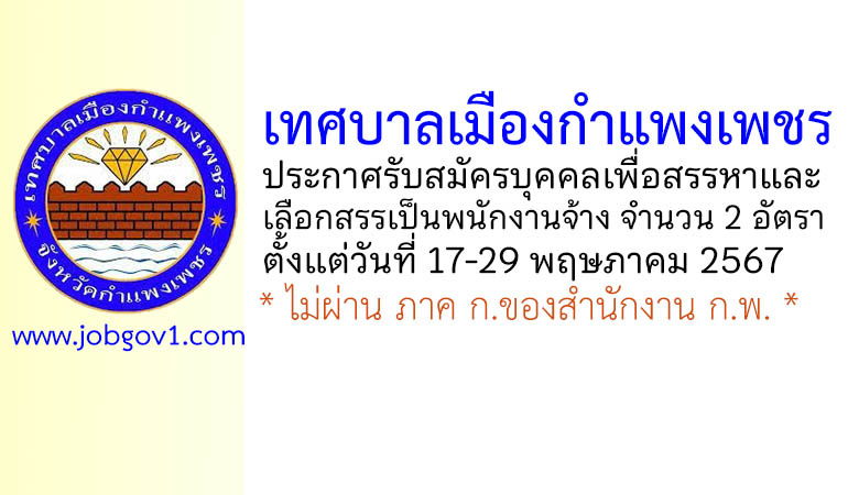 เทศบาลเมืองกำแพงเพชร รับสมัครบุคคลเพื่อสรรหาและเลือกสรรเป็นพนักงานจ้าง 2 อัตรา ตั้งแต่วันที่ 17-29 พฤษภาคม 2567
