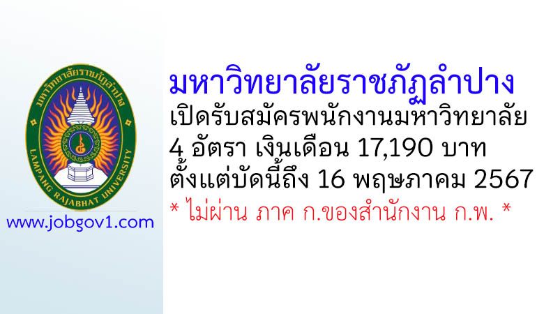มหาวิทยาลัยราชภัฏลำปาง รับสมัครพนักงานมหาวิทยาลัย 4 อัตรา ตั้งแต่วันที่ 2-16 พฤษภาคม 2567