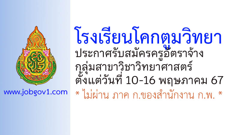 โรงเรียนโคกตูมวิทยา รับสมัครครูอัตราจ้าง กลุ่มสาขาวิชาวิทยาศาสตร์ ตั้งแต่วันที่ 10-16 พฤษภาคม 2567