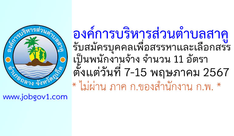 องค์การบริหารส่วนตำบลสาคู รับสมัครบุคคลเพื่อสรรหาและเลือกสรรเป็นพนักงานจ้าง 8 อัตรา ตั้งแต่วันที่ 7-15 พฤษภาคม 2567