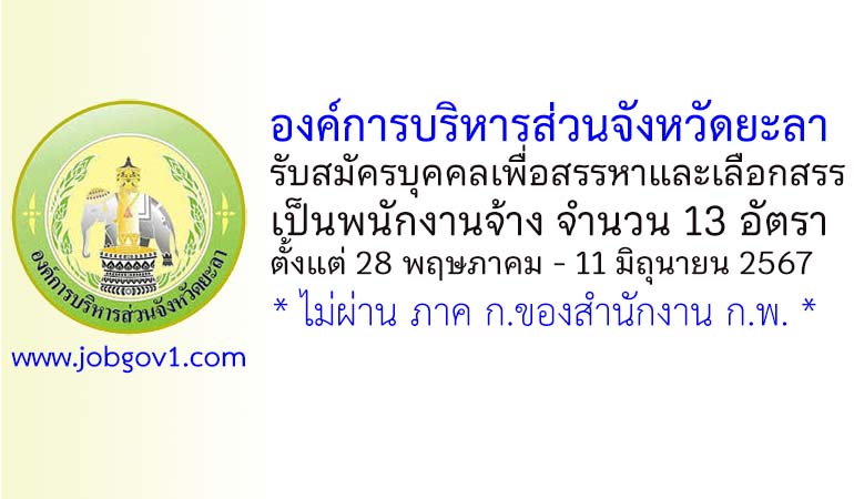 องค์การบริหารส่วนจังหวัดยะลา รับสมัครบุคคลเพื่อสรรหาและเลือกสรรเป็นพนักงานจ้าง 13 อัตรา ตั้งแต่ 28 พฤษภาคม – 11 มิถุนายน 2567