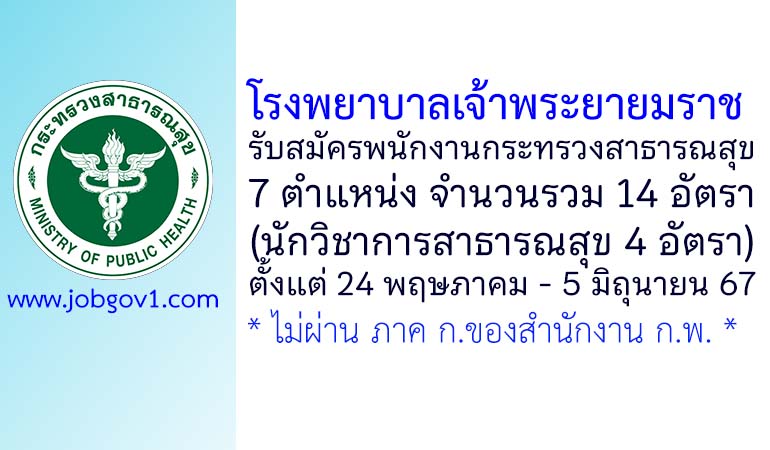 โรงพยาบาลเจ้าพระยายมราช รับสมัครพนักงานกระทรวงสาธารณสุขทั่วไป 14 อัตรา ตั้งแต่ 24 พฤษภาคม – 5 มิถุนายน 2567