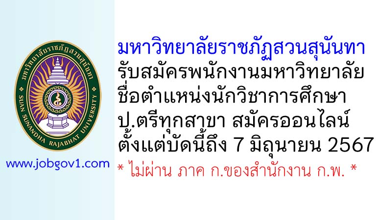 มหาวิทยาลัยราชภัฏสวนสุนันทา รับสมัครพนักงานมหาวิทยาลัย ตำแหน่งนักวิชาการศึกษา ตั้งแต่บัดนี้ถึง 7 มิถุนายน 2567