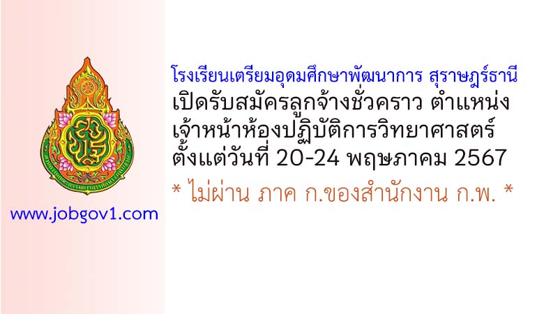 โรงเรียนเตรียมอุดมศึกษาพัฒนาการ สุราษฎร์ธานี รับสมัครลูกจ้างชั่วคราว ตำแหน่งเจ้าหน้าห้องปฏิบัติการวิทยาศาสตร์ ตั้งแต่วันที่ 20-24 พฤษภาคม 2567