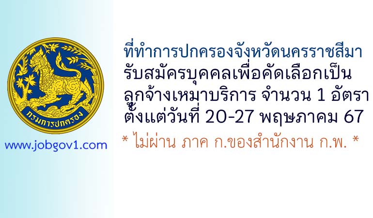 ที่ทำการปกครองจังหวัดนครราชสีมา รับสมัครคัดเลือกบุคคลเพื่อจัดจ้างเหมาบริการ 1 อัตรา ตั้งแต่วันที่ 20-27 พฤษภาคม 2567